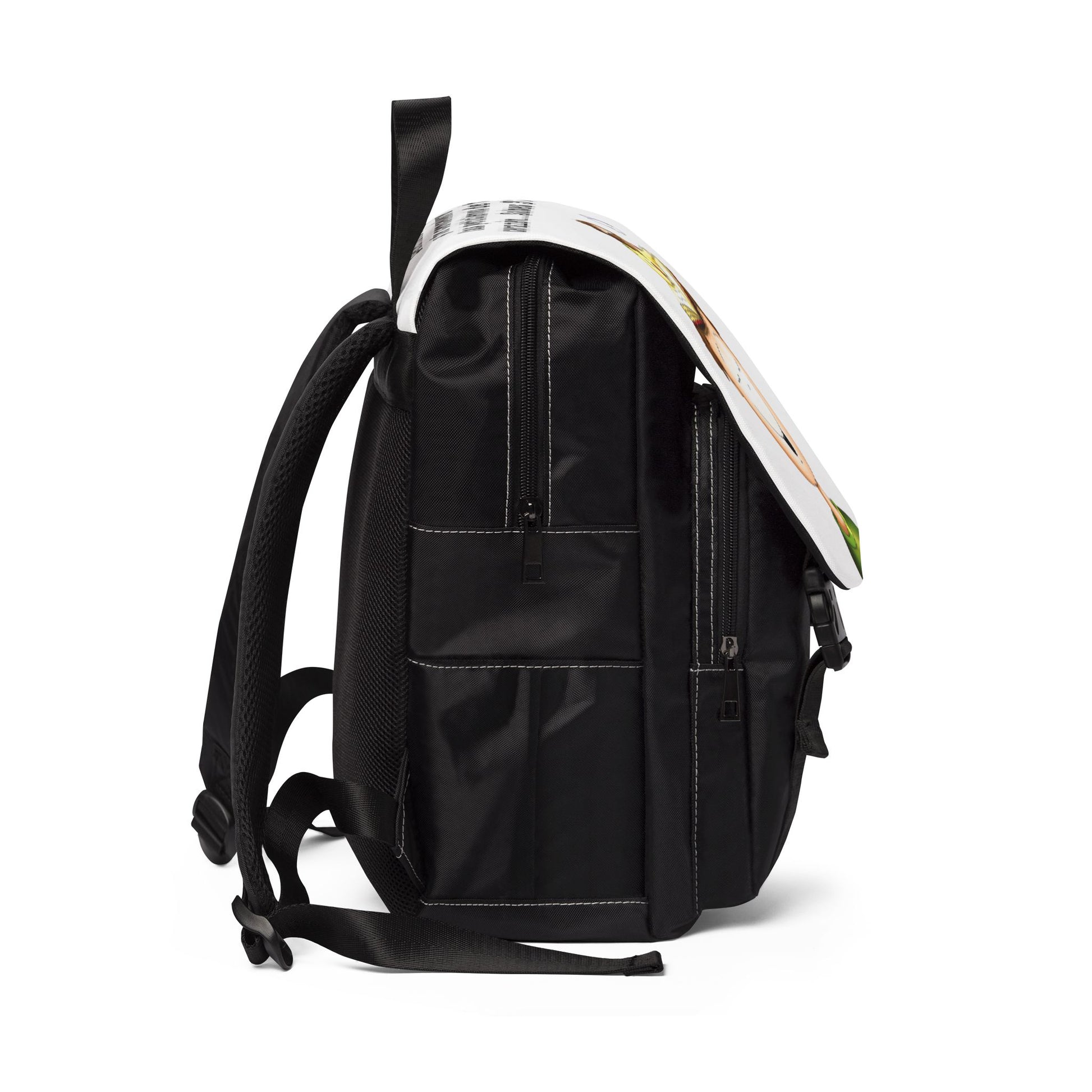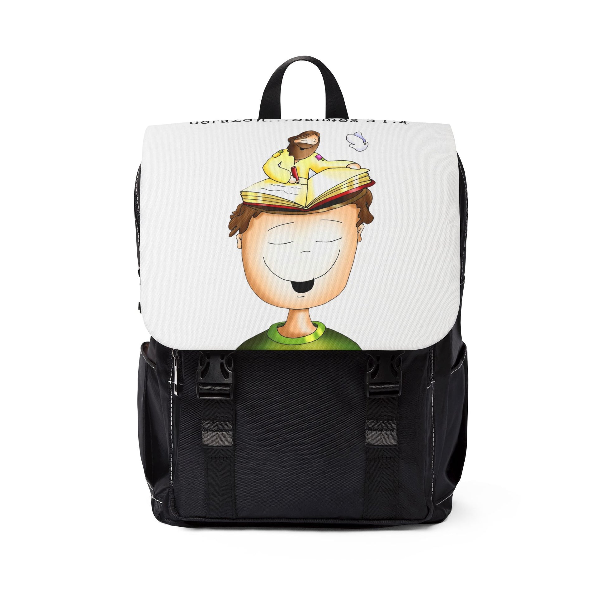 Casual backpack in a classic shape with a front flap design. It is made of durable Oxford canvas. It has two slip interior pockets and one laptop sleeve in the main compartment, a front zipper pocket, and two side pockets.