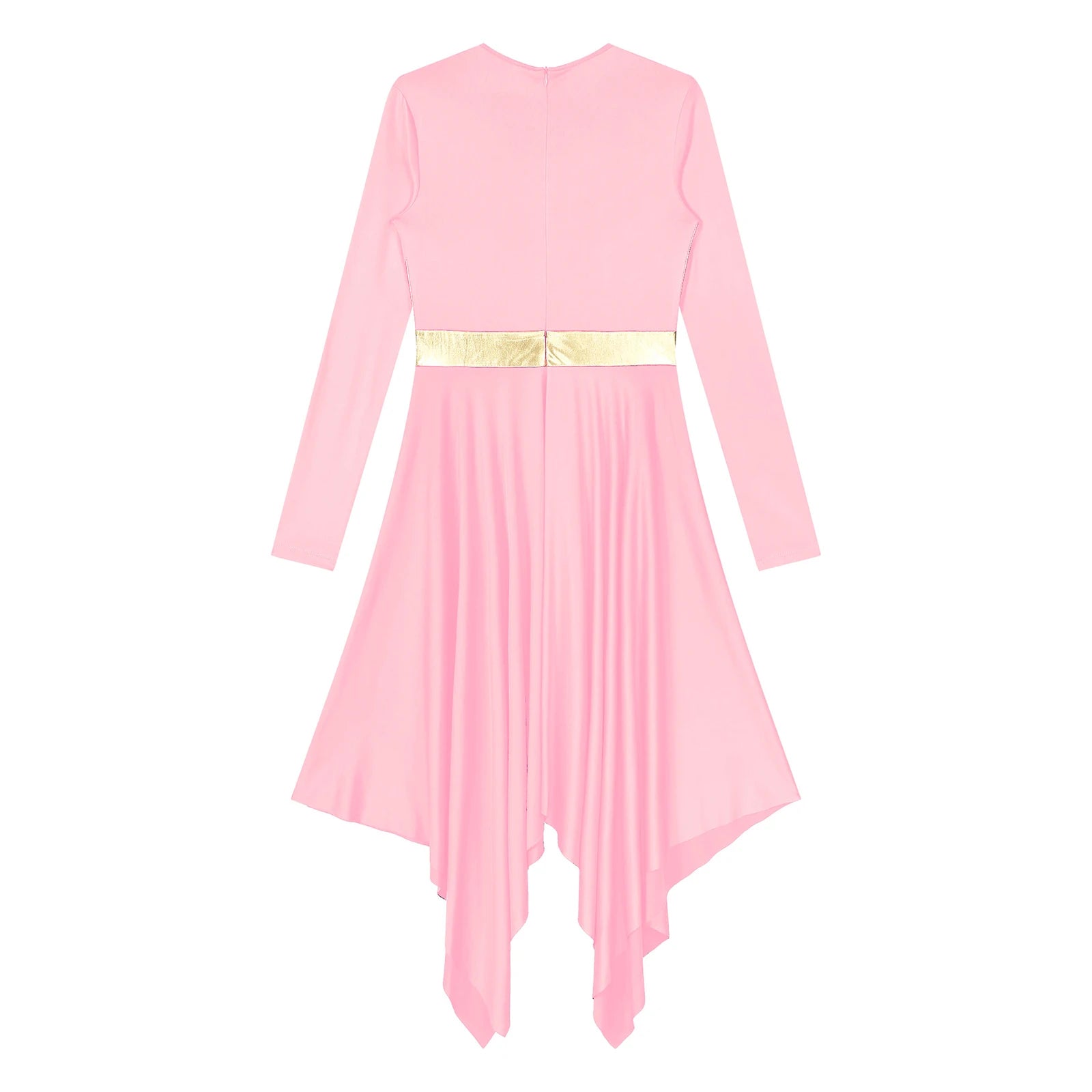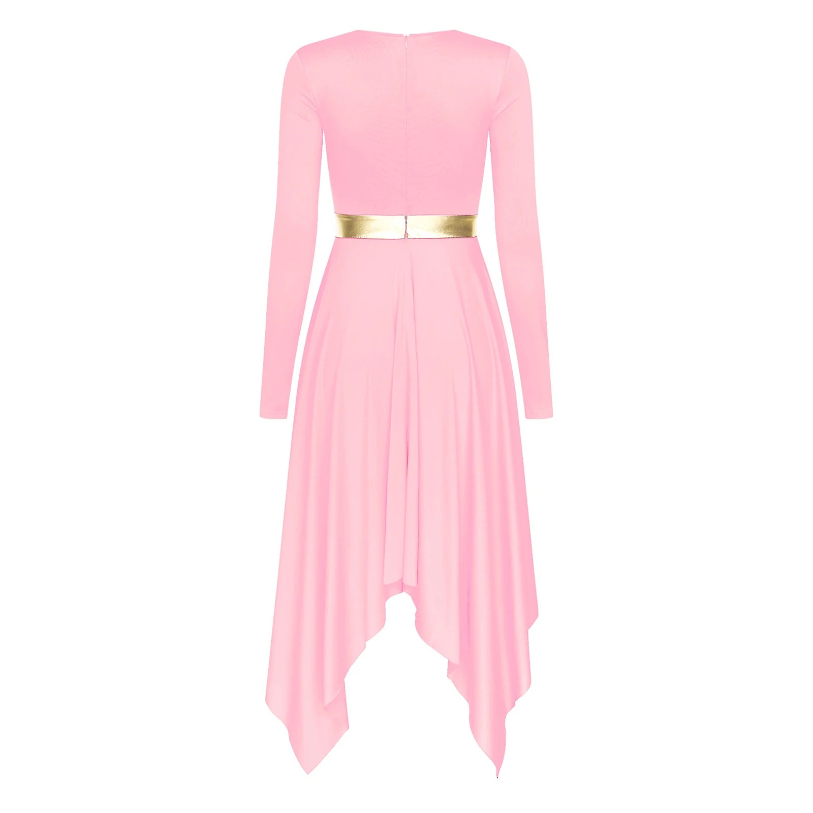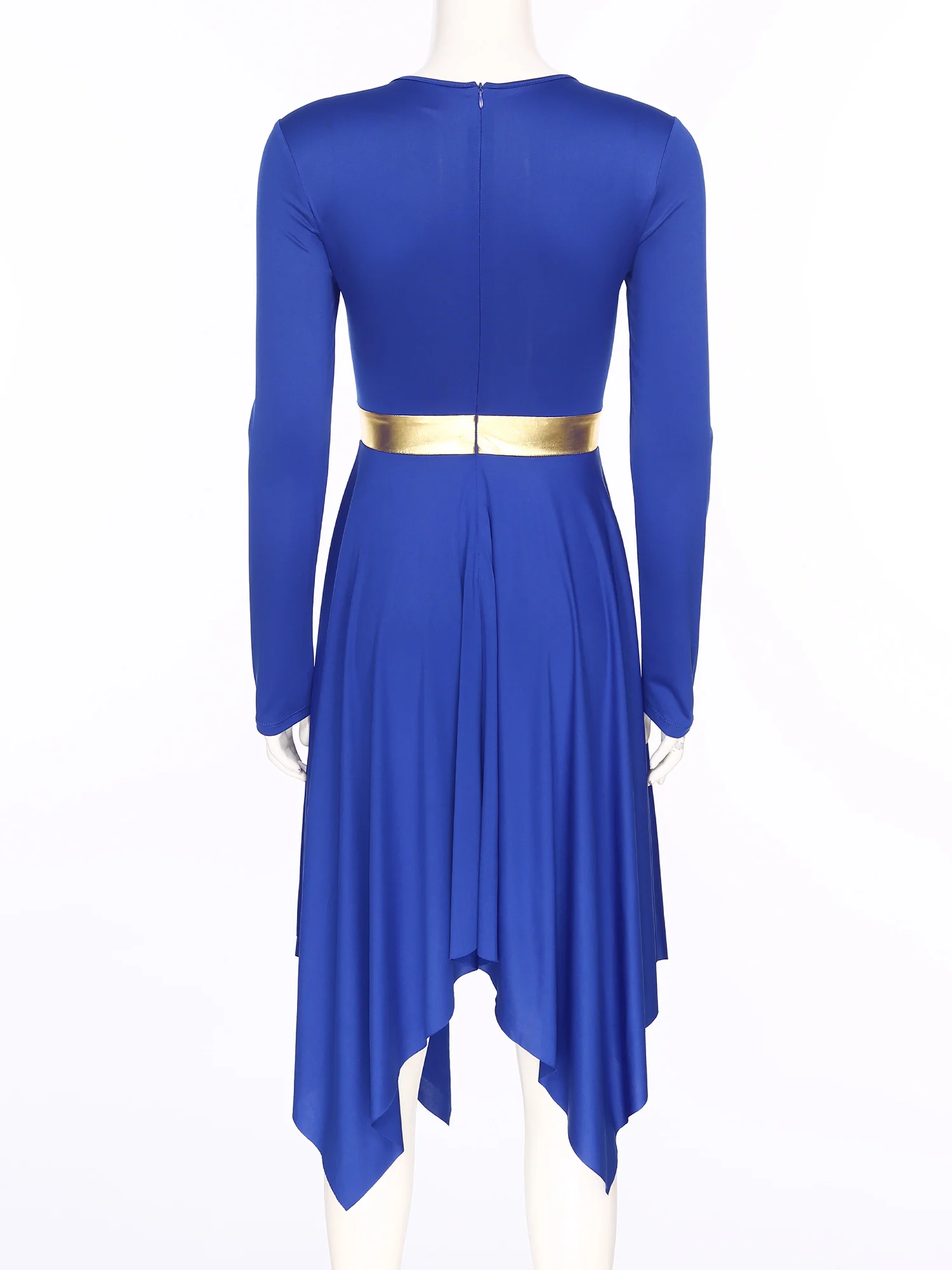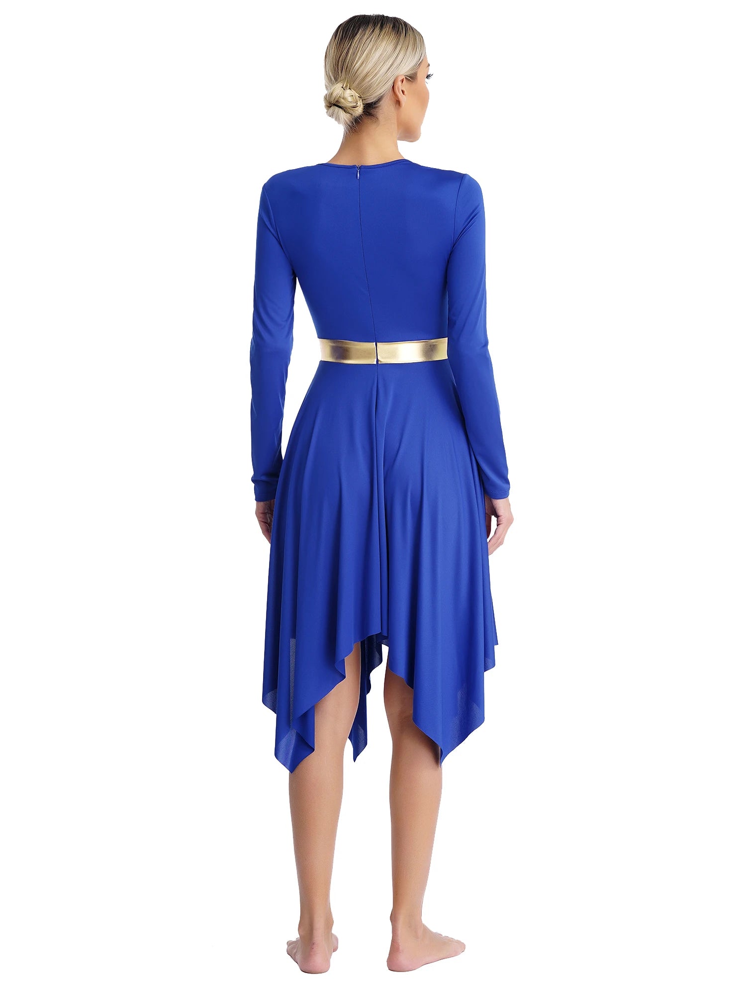 Women’s Round neck Long Sleeve Dance Dress with invisible zipper on the back for easy wearing.